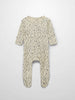 Light beige ribbed fabric with leafy sprigs in green and blue gives this baby boy’s beanie an organic feel. Stretchy and breathable, it offers cozy warmth for crisp fall strolls and quiet moments at home.