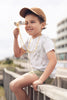 Finely sketched sage green lines, compass markers, and geographic details create a vintage map print on this off-white T-shirt for baby, toddler, and little boys. Made from soft, lightweight fabric, it feels breathable and comfortable for everyday play and outdoor activities. Designed with a relaxed crew neckline, boxy fit, and short sleeves, this tee is a fun, easy choice for little explorers ready for daily adventures.