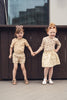 Scattered pink blossoms and leafy accents bring a garden-fresh look to this skirt for toddlers, little girls, and big girls. Set on a soft light beige background, the print feels warm and summery while remaining easy to style. The elastic waistband creates a comfortable fit, while two front patch pockets finished with softly scalloped edges add a sweet decorative touch. Style it with the Tan Floral T-shirt – 3/4 Sleeve or the Tan Floral T-shirt – Short Sleeve for a cute outfit for warm weather.